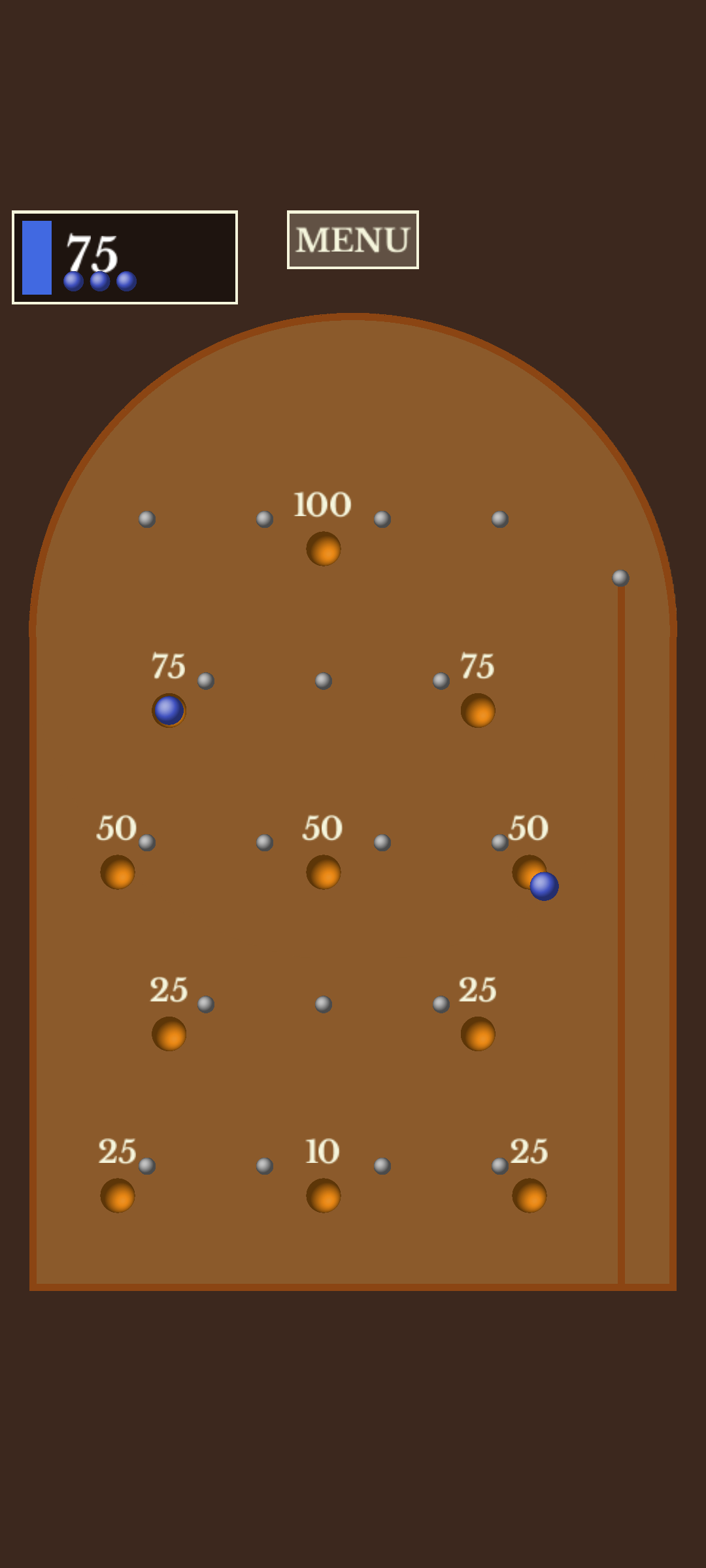 Test your aim, timing and luck in this classic, Bagatelle-inspired arcade game. Launch the ball and watch it bounce between the pegs as you guide it into the high-value scoring holes. The simple controls make it easy to play, while the unpredictable physics ensure that every round is exciting. It’s perfect for quick sessions, competitive score chasing, or just relaxing and having fun in the arcade.